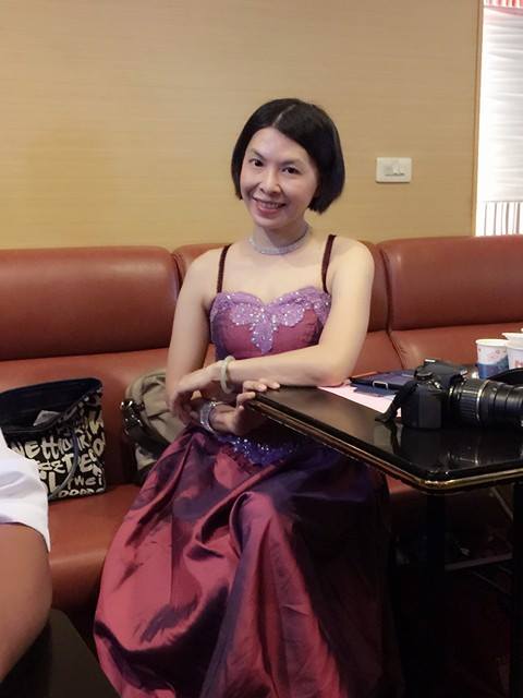 7/17那天我又去"服裝表演"了,呵呵呵…….,每回日本歌聯誼總是我最開心的時刻,不僅可以唱歌紓壓,更可以穿漂亮的衣服亮相,就感到整個月的壓力都釋放了。 我常常跟我的學生麗麗聊天,她大我一歲,我們"彈琴,也談心情;談家庭,也談事情",我記得我跟她聊過,內容是這樣的「麗,我小時候,就想像著,有一天自己長大了,可以穿著漂亮的禮服上台表演,因為很羨慕電視上穿著華麗晚禮服演唱的歌星,感覺漂亮極了!」「好神奇喔!那你美夢成真了耶!」「是ㄋㄟ,開心。」 有些禮服是我自己的,有些是朋友知道我要去日本歌聯誼借我穿的,目的是比較一下,兩個人穿的差別在哪裡?也有些是學生暫借的,因為她們很少有機會穿,而我就變成了她們的實驗品,多方嚐試的結果,我的骨架暫時還撐得起來,穿起來不會太難看,否則,真是對朋友抱歉了呢! 謝謝張金城大哥,陳登鏞大哥,許麗雪姐姐每次都幫我拍美麗的照片,讓我留下美好的回憶,我的一個轉身,我的一顰一笑,我的裙擺搖搖,在在都是我心情的寫照,,儘管每張都很類似,卻都記載得鉅細靡遺,不捨刪除任何一張,容我留下它們全部,在以後,我每次看"它們"的時候就會想起我當時的心情。105.7.20